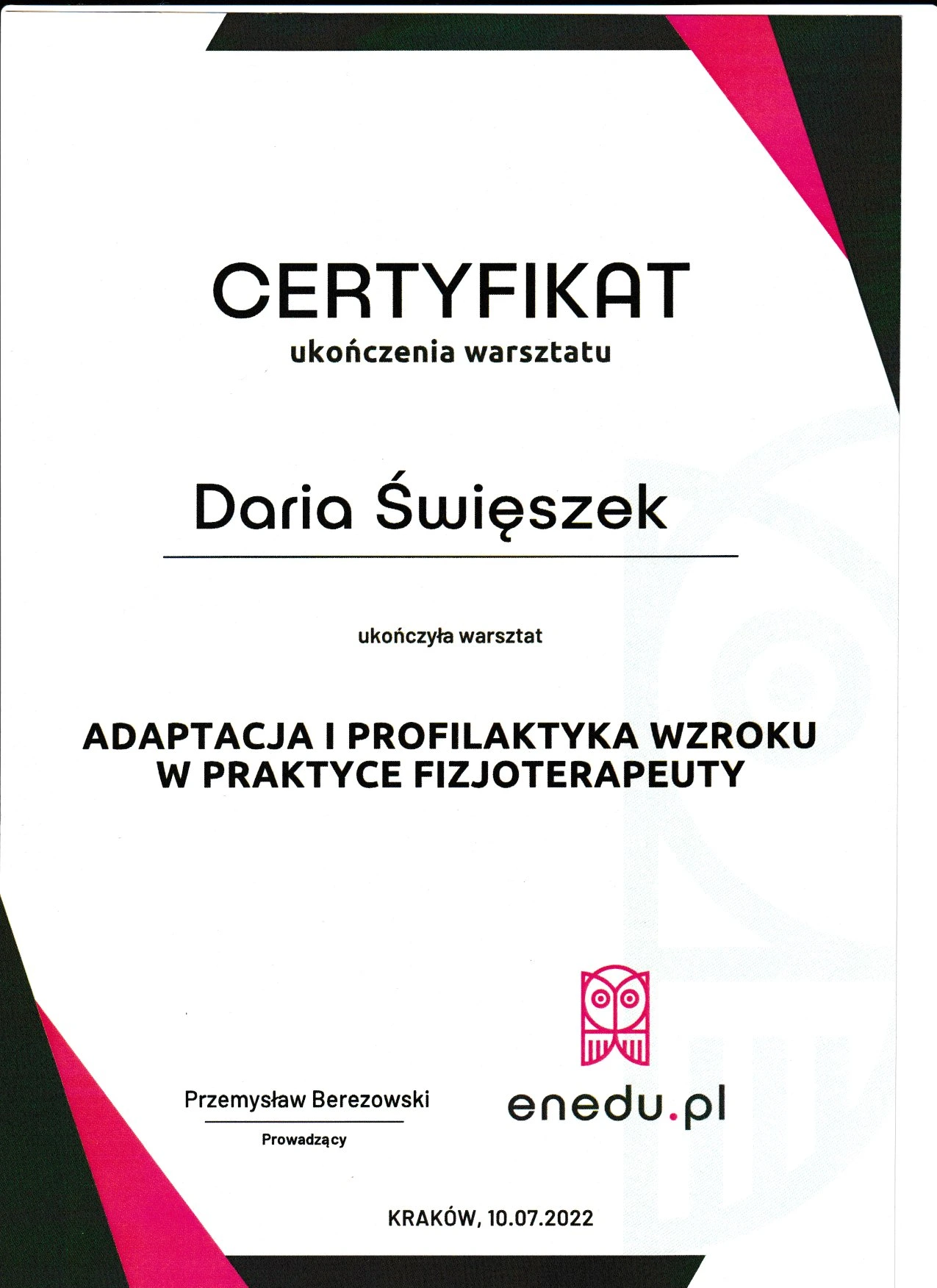 - adaptacja i profilaktyka wzroku w praktyce fizjoterapeuty