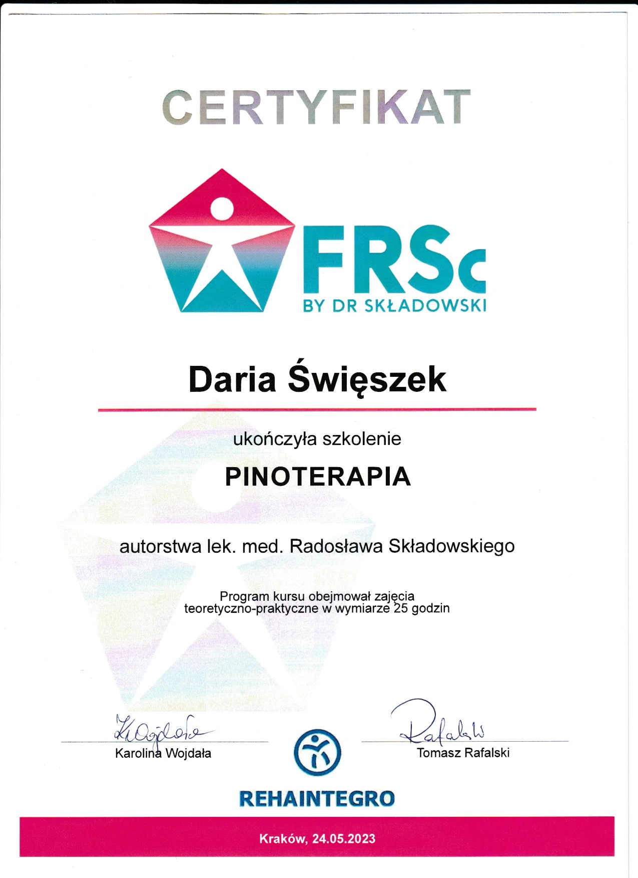 Nazywam się Daria Świeszek, jestem fizjoterapeutką i założycielką gabinetu RehClinic, miejsca stworzonego z myślą o osobach potrzebujących skutecznego wsparcia w walce z bólem i w powrocie do pełnej sprawności.