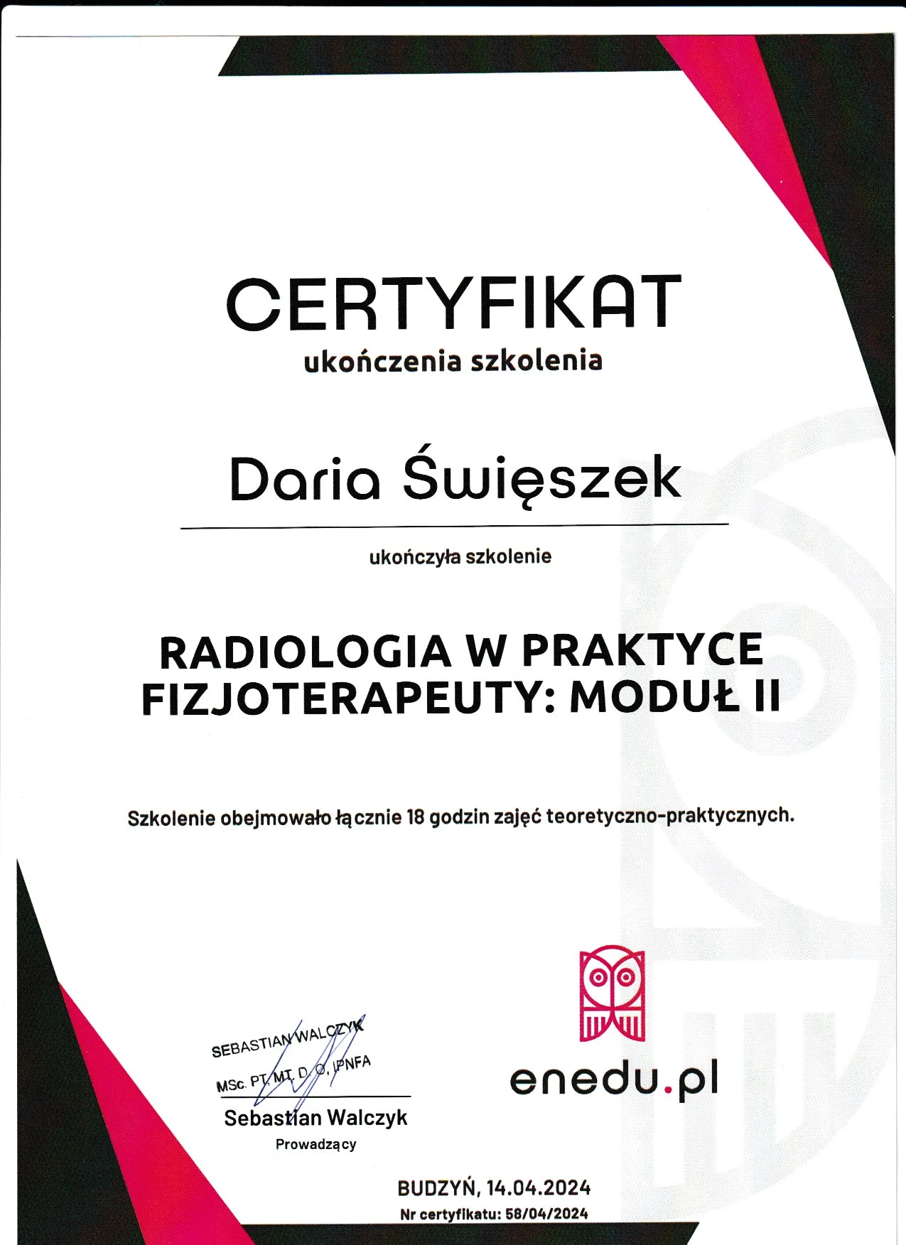 - Radiologia w praktyce fizjoterapeuty, 2 moduły