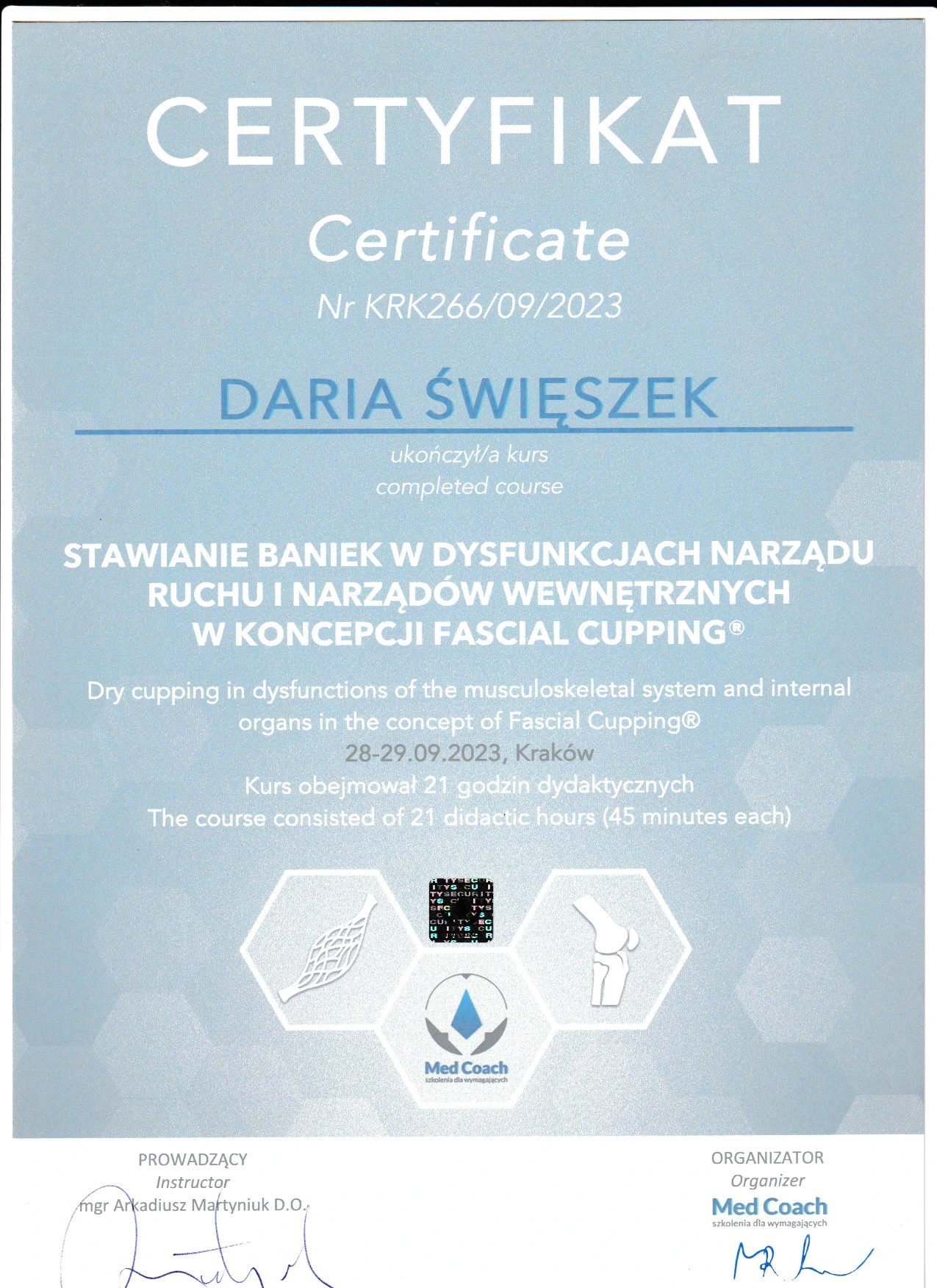 - Stawianie baniek w dysfunkcjach narządu ruchu i narządów wewnętrznych w koncepcji FASCIAL CUPPING